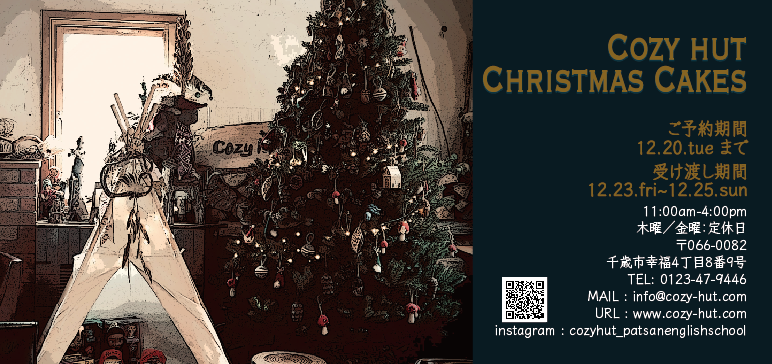 今年もCozy hutのChristmasケーキご予約承っております。