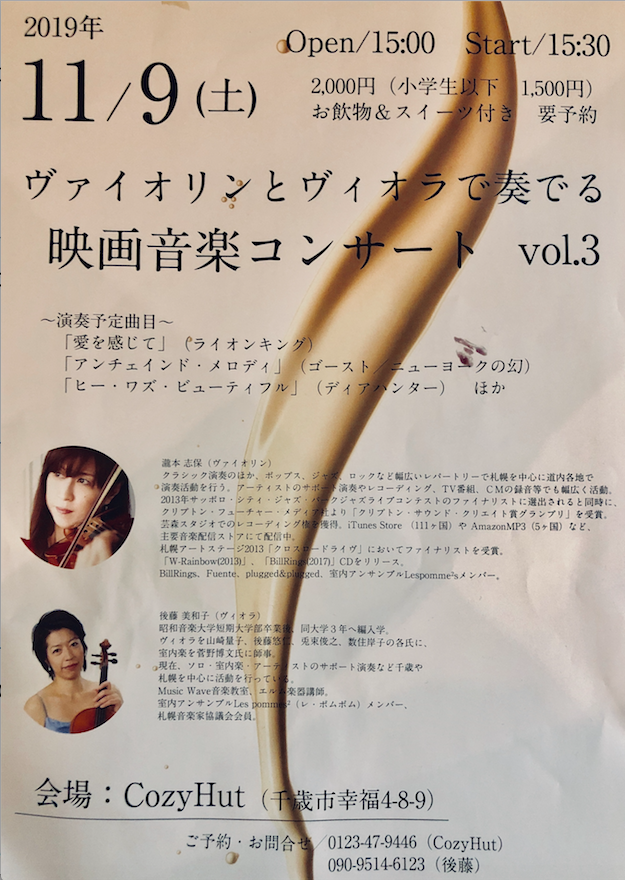 11.09.sat 15:30より『Viola & Violon』による映画音楽コンサートが開催されます。