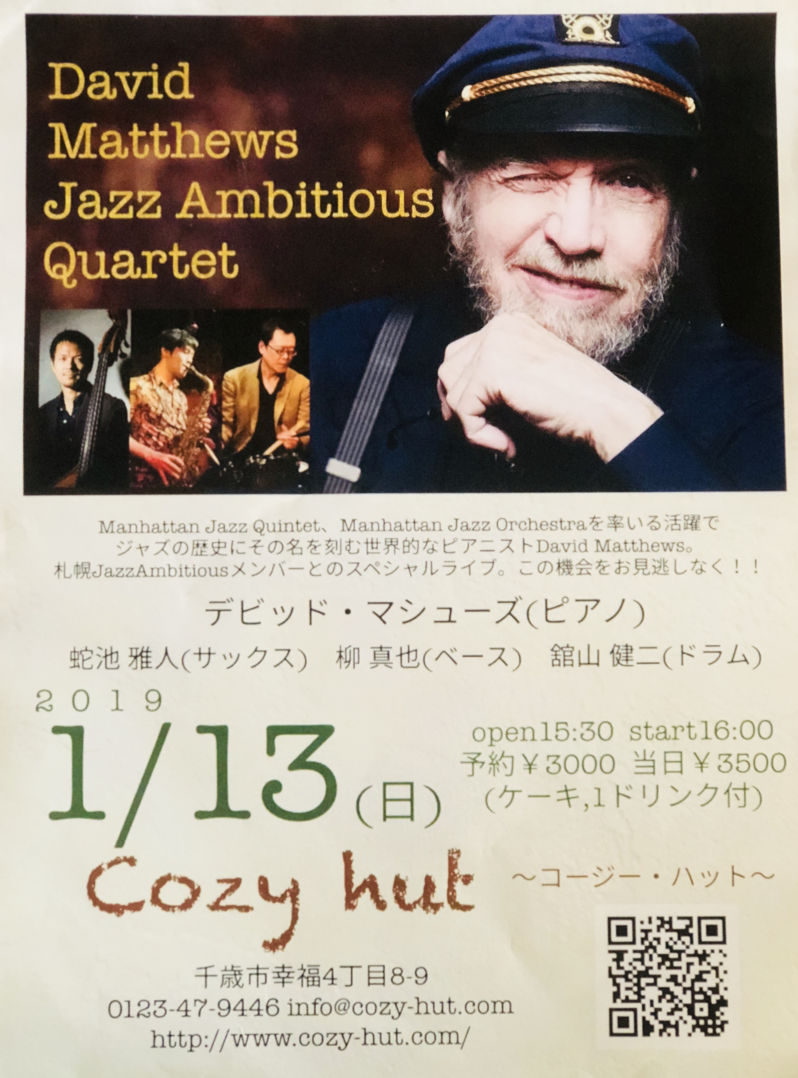 第2弾 Cozy hutに「デビッド マシューズ」がやってきます。