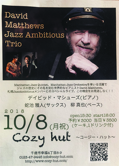 10/8(月祝)デビッド マシューズ ライブのご予約が、定員を大幅に超えて