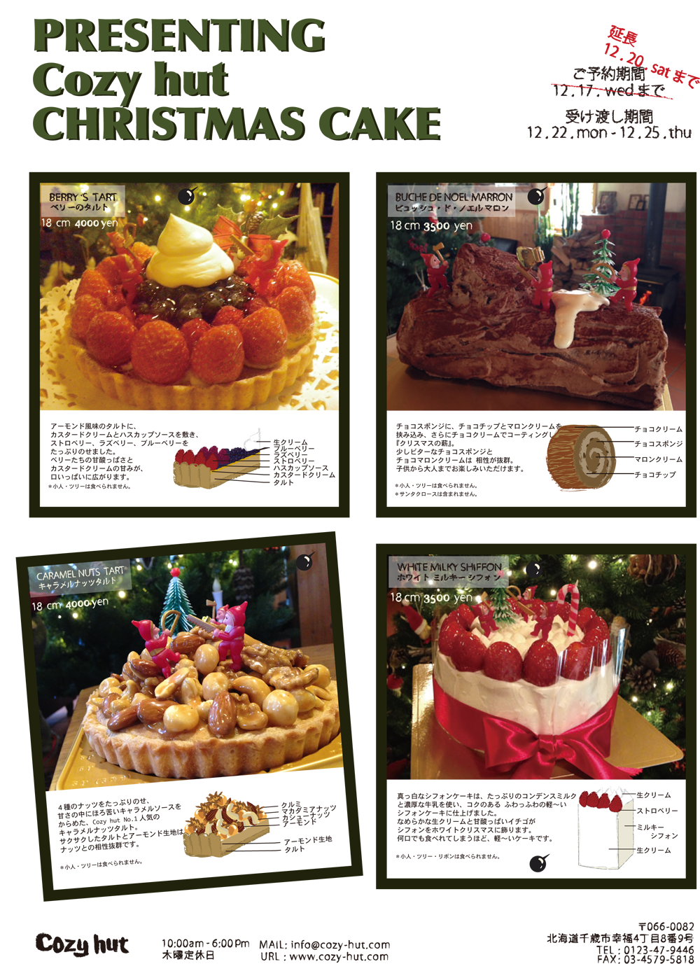 ところ:Cozy Hut 千歳市幸福4-8-9 (0123-47-9446)